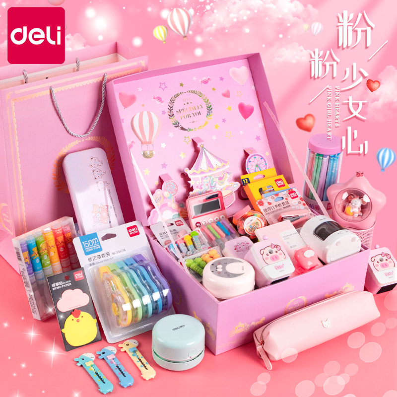 得力文具套装礼盒幼儿园男女少女心女孩女生儿童学习用品生日礼物大礼包小学生一年级奖品入学开学毕业套盒